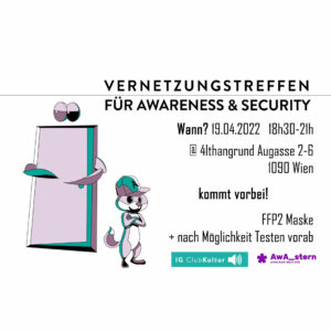 english version see below – Das Treffen ist zweisprachig. Wann?Dienstag, 14.06.2020 19h @ 4lthangrund – Alte WU – Augasse 2-6,… Mehr 4. Vernetzungstreffen Awareness & Security