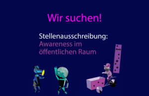 Ausschreibung – Wir suchen Mitarbeiter_innen für Awareness im öffentlichen Raum Nachdem es noch 2 offene Stellen im Team gibt, gibt… Mehr Ausschreibung – Wir suchen: Mitarbeiter_innen Awareness im öffentlichen Raum